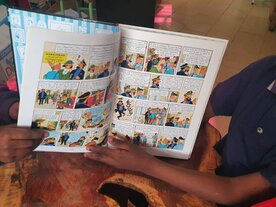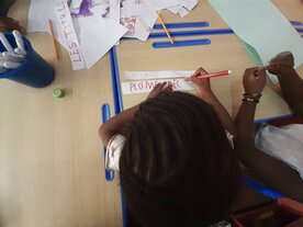 Les élèves de CM ont étudié l'univers de la bande-dessinée. Ils ont également réalisé des planches. La consigne d'écriture était la suivante : lisez la bande-dessinée et réalisez la suite en une planche. Voici le fruit de cette magnifique créativité.